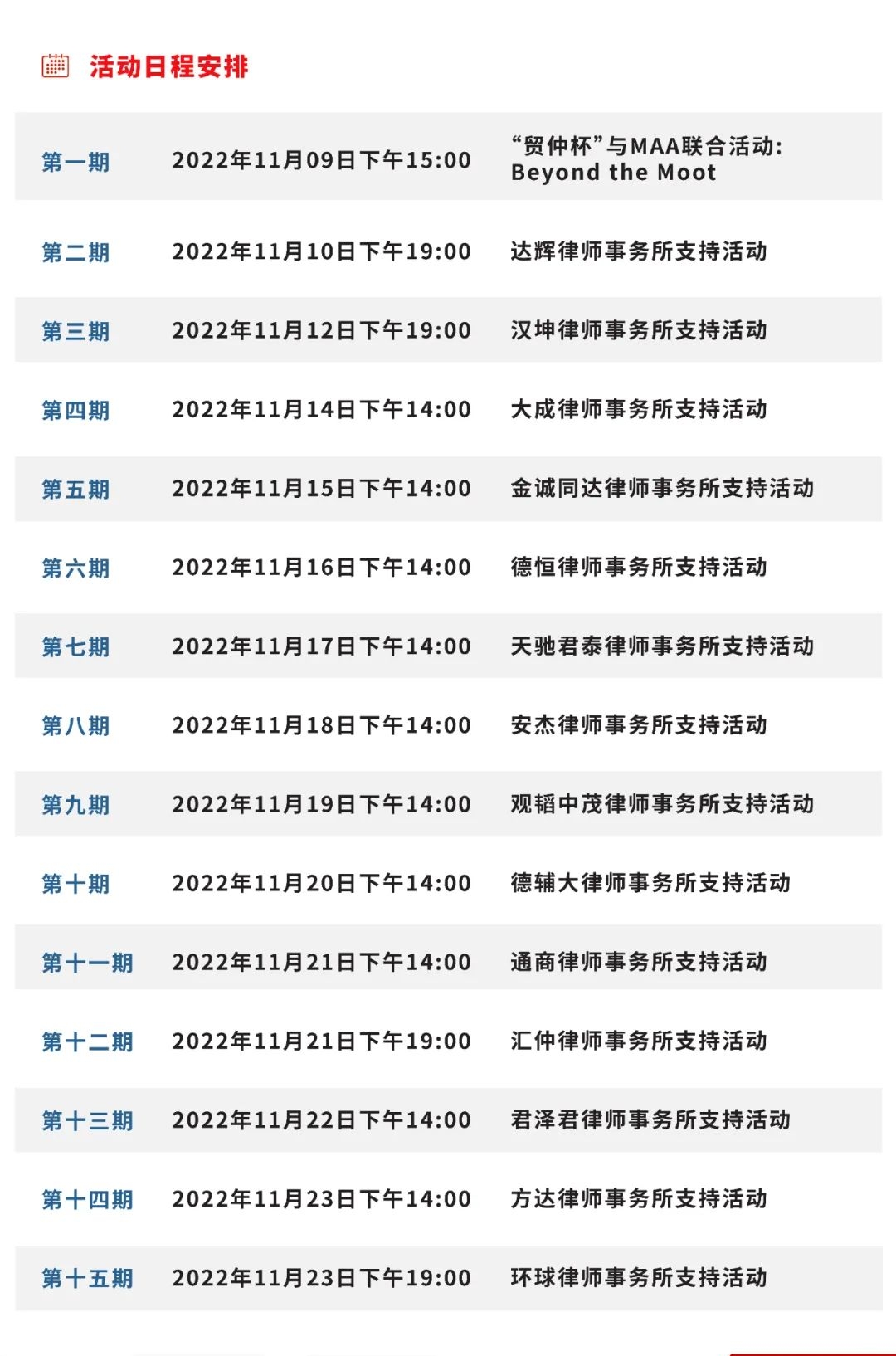 第二十屆“貿(mào)仲杯”國際商事仲裁模擬仲裁庭辯論賽Voice of Moot 系列培訓(xùn)活動將于2022年11月9日開始,至11月23日結(jié)束,共計15期相關(guān)活動。“貿(mào)仲杯”辯論賽自2000年舉辦至今已歷經(jīng)十九屆,辯論賽始終秉持培養(yǎng)具備國際化實務(wù)能力的涉外仲裁法治人才的初心,匯集了大批國際仲裁法律人才。