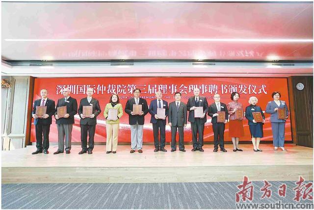2月28日,深圳國際仲裁院第三屆理事會理事聘書頒發(fā)儀式在前海國際仲裁大廈舉行。受訪單位供圖