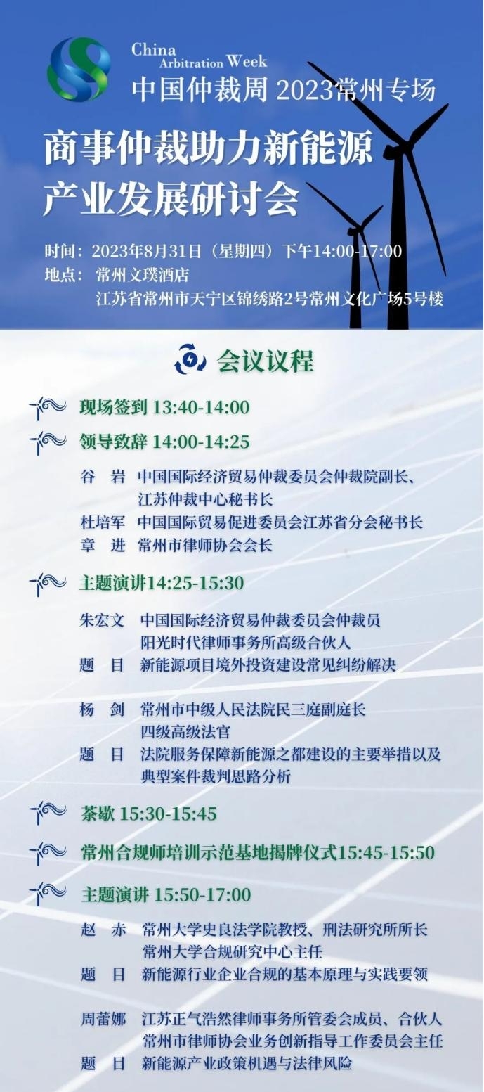 近年來,江蘇省常州市緊扣“國際化智造名城、長三角中軸樞紐”的城市定位,在新能源產(chǎn)業(yè)不斷發(fā)力,著力打造引領(lǐng)長三角,影響全國乃至全球的“新能源之都”。經(jīng)濟的蓬勃發(fā)展,產(chǎn)業(yè)的日益興旺,離不開良好的營商環(huán)境和制度化、規(guī)范化的法律保護措施。本次“中國仲裁周”常州專場活動——商事仲裁助力新能源產(chǎn)業(yè)發(fā)展研討會,將聚焦新能源產(chǎn)業(yè)熱點問題,幫助企業(yè)進一步提升化解國內(nèi)外商事爭議的能力,推動建設(shè)公平、高效、法治的市場環(huán)境。