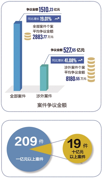 依法公平公正處理當事人爭議,是貿仲委業(yè)務發(fā)展的重要基礎。《報告》顯示,2023年貿仲委仲裁案件量質齊升,新受理案件5237件,同比增長28.17%,爭議金額人民幣1510.23億元(以下幣種均為人民幣),同比增長19.01%,連續(xù)六年破千億元大關,個案平均爭議金額2883.77萬元,案件數(shù)量和標的額均創(chuàng)歷史新高。案件國際化程度持續(xù)提升。案件涉及88個國家和地區(qū),當事人來自71個國家和地區(qū)。雙方均為境外當事人的國際案件62件。2023年首次實現(xiàn)“一帶一路”案件國別基本全覆蓋。案件程序復雜多樣。涉及多方當事人案件1072宗,占總受案量20.5%;涉及多份合同案件906宗,占總受案量17.3%;涉及追加當事人程序案件65件,合并仲裁案件64件。審理方式靈活高效。貿仲委仲裁庭結合案情采用大陸法系、英美法系方式審理案件,結合具體案件情形,靈活采用不同審理方式,依法保證仲裁程序公平正當,及時維護當事人合法權益。案件爭議類型新穎多元。針對出現(xiàn)的新類型爭議,進一步規(guī)范案件分類管理,其中建設工程、知識產(chǎn)權、金融等熱點領域案件增幅明顯。值得注意的是,新類型案件還呈現(xiàn)出新型金融爭議復雜疑難、案件數(shù)量持續(xù)增長,能源類案件保持增長態(tài)勢,知識產(chǎn)權類案件比重增加,ESG等新興領域糾紛進入視野等諸多特點。