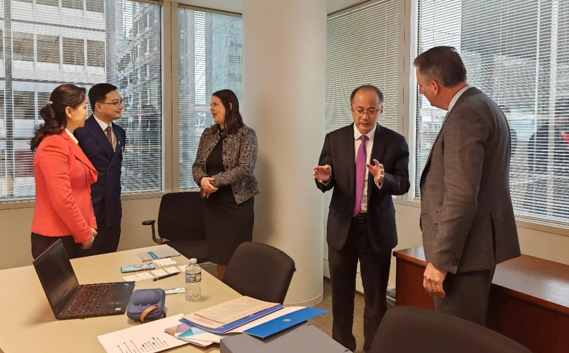 美國金融業(yè)監(jiān)管局爭議解決中心芝加哥區(qū)域辦公室副總監(jiān)摩根·約翰遜、深國仲院長助理兼任中國(深圳)知識產(chǎn)權(quán)仲裁中心主任陳巧梅、深國仲國際合作與發(fā)展處處長兼深國仲江門中心主任黃郭勇等參加業(yè)務(wù)交流。