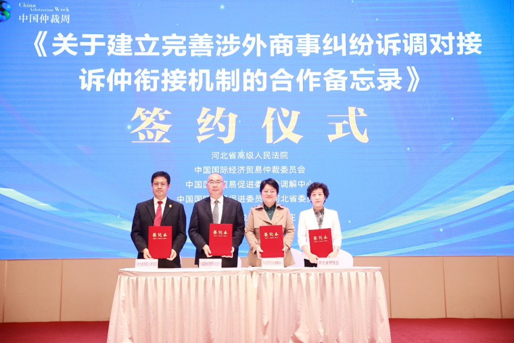 在合作協(xié)議簽署及發(fā)布儀式環(huán)節(jié),貿(mào)仲委與河北省高級人民法院、中國國際貿(mào)易促進委員會調(diào)解中心、中國國際貿(mào)易促進委員會河北省委員會就共建“涉外商事爭議訴調(diào)對接、訴仲銜接工作機制”“服務(wù)保障雄安新區(qū)及河北自貿(mào)試驗區(qū)建設(shè)機制”“涉外知識產(chǎn)權(quán)聯(lián)合保護機制”“共同推進法治化營商環(huán)境建設(shè)機制”簽署了《合作備忘錄》,意在為河北省引入國際先進仲裁、調(diào)解機構(gòu)服務(wù),便利當(dāng)事人一站式爭議解決,各方合力,共同服務(wù)保障雄安新區(qū)及河北自貿(mào)試驗區(qū)建設(shè),優(yōu)化河北省營商環(huán)境。