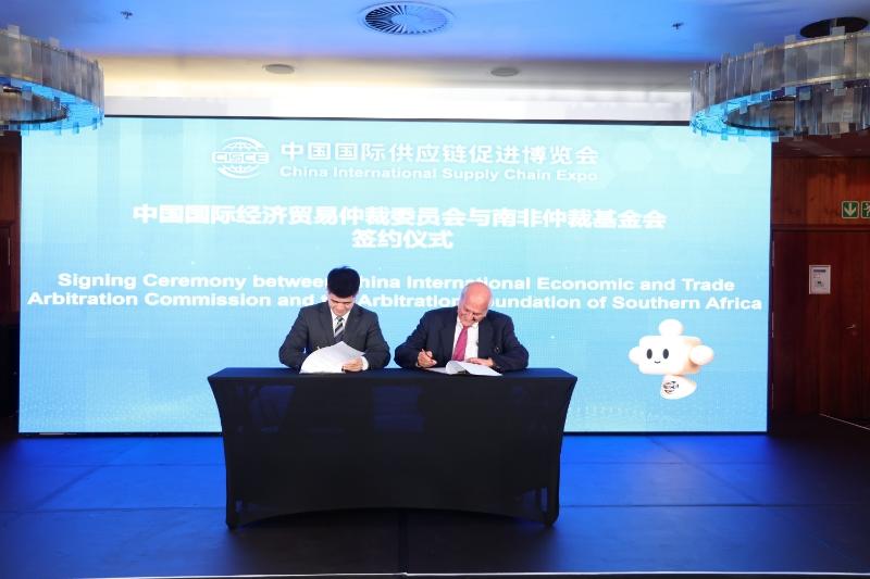 2月20日,在中國-南非經(jīng)貿(mào)論壇暨第三屆鏈博會(huì)推介會(huì)上,中國國際經(jīng)濟(jì)貿(mào)易仲裁委員會(huì)(簡(jiǎn)稱貿(mào)仲)與南非仲裁基金會(huì)簽署合作協(xié)議,并在中國貿(mào)促會(huì)會(huì)長(zhǎng)任鴻斌、中國駐南非使館公使李志剛、南非豪登省副省長(zhǎng)雅各布·馬馬波羅以及現(xiàn)場(chǎng)來自中非多國和地區(qū)的政府機(jī)構(gòu)、工商界法律界代表200余人的共同見證下,舉辦了簽約儀式。
