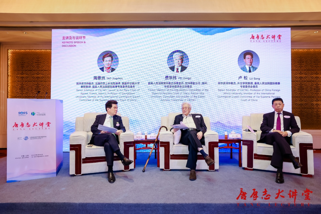 9月16日,由中國國際經(jīng)濟貿(mào)易仲裁委員會(簡稱“貿(mào)仲”)主辦的第九屆“唐厚志大講堂”作為中國仲裁周重點活動之一在京舉行。最高人民法院審判委員會原委員,中國國際經(jīng)濟貿(mào)易仲裁委員會原副主任、顧問、專家咨詢委員會主任委員費宗祎教授以“中國商事仲裁的發(fā)展與展望”為題作主題演講。貿(mào)仲資深仲裁員、法國巴黎上訴法院律師、美國喬治城大學兼職教授、最高人民法院國際商事專家委員會委員陶景洲先生,貿(mào)仲資深仲裁員、外交學院教授、最高人民法院國際商事專家委員會委員盧松先生進行與談。貿(mào)仲副主任兼秘書長王承杰主持本場活動并致辭。來自全球30個國家和地區(qū)的仲裁機構負責人、仲裁員、律師、學者及工商界人士等近300名海內(nèi)外嘉賓現(xiàn)場參與,超過3000人次線上收看直播。
