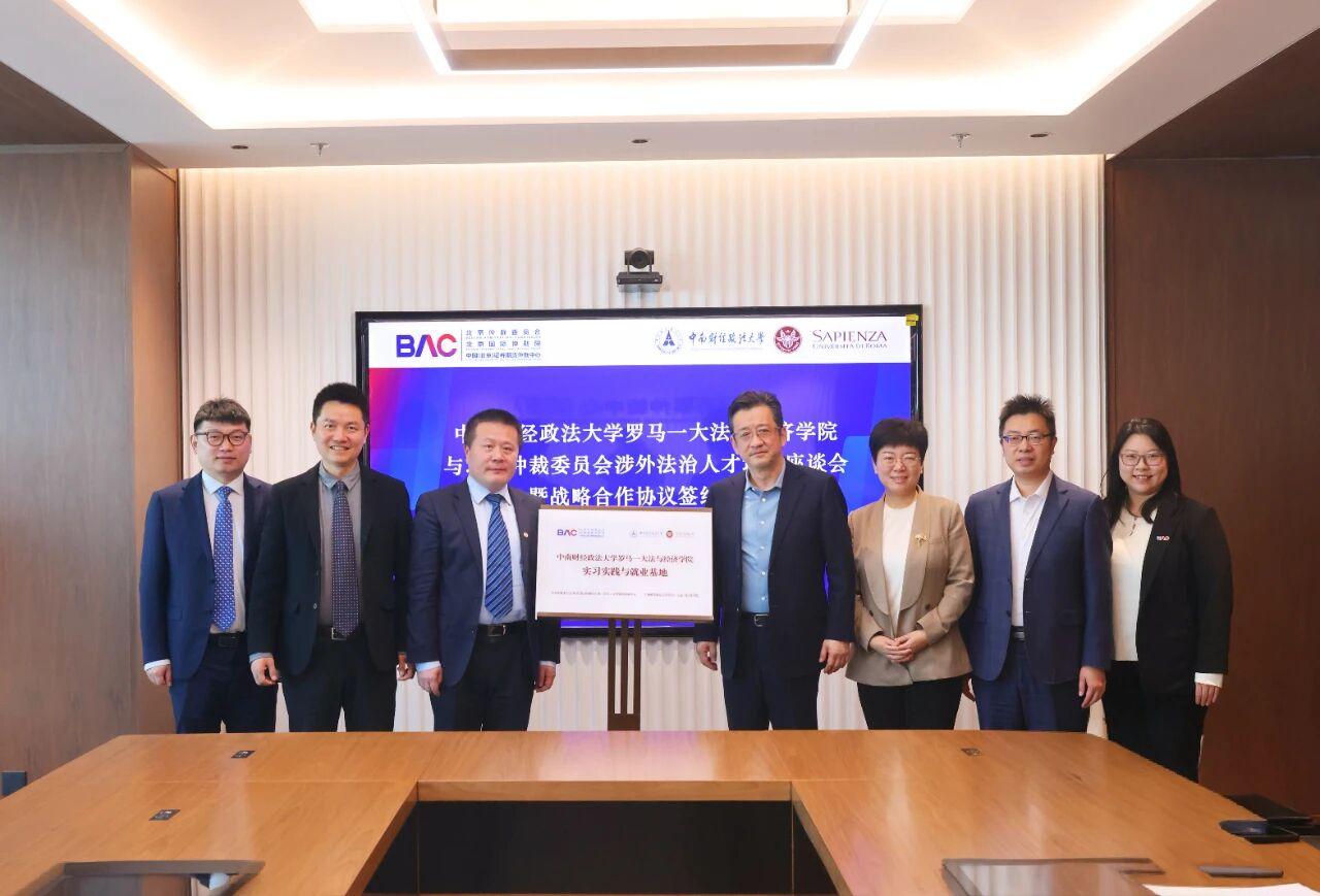 座談會(huì)后,雙方簽署《戰(zhàn)略合作協(xié)議》,并共同為“中南財(cái)經(jīng)政法大學(xué)羅馬一大法與經(jīng)濟(jì)學(xué)院實(shí)習(xí)與就業(yè)基地”揭牌。雙方均表示,期待通過(guò)共建實(shí)習(xí)與就業(yè)基地、聯(lián)合開(kāi)展主題研討、加強(qiáng)學(xué)術(shù)交流與實(shí)務(wù)合作等方式,進(jìn)一步提升學(xué)生的實(shí)踐能力和國(guó)際視野,推動(dòng)涉外法治人才培養(yǎng)取得實(shí)質(zhì)性成效。