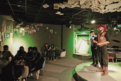 于是他們搭建了大型角色扮演游戲“夢境之鏡”,顧客來到嘻番里,一進(jìn)門就成為游戲中的玩家。游戲里有X星人、幻獸Z族、探險(xiǎn)家三個(gè)陣營線。每個(gè)陣營一條主線、若干條支線,這些支線將顧客引導(dǎo)到各家商戶的場景內(nèi),解謎成功可獲得相應(yīng)禮物。