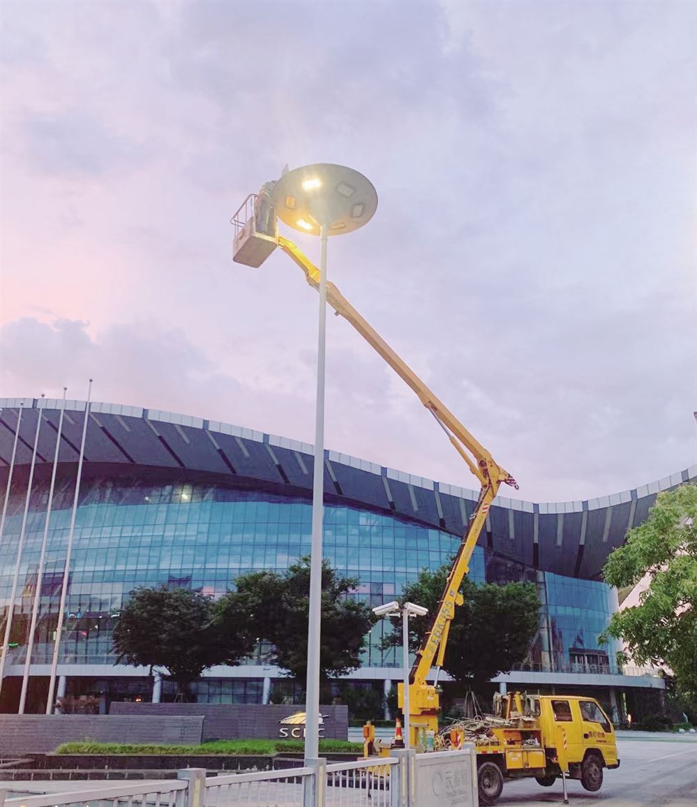 路燈修復(fù)現(xiàn)場。(陳靜攝)