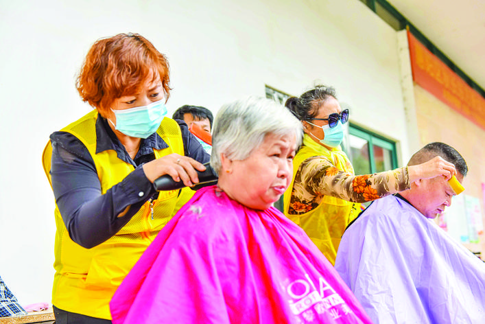 志愿者為居民免費理發(fā)。