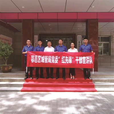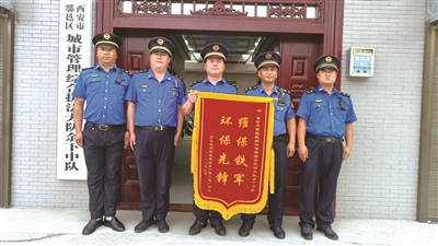 “我去蔣村街辦走親戚,在那里也發(fā)現(xiàn)了著裝整齊的城管隊員了!”8月,鄠邑區(qū)西街小學接孩子回家的家長們興高采烈地議論著。與西街小學一墻之隔的區(qū)城管局,此刻黨旗飄揚,格外耀眼。