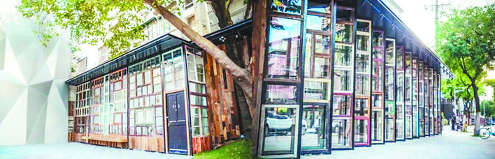 在紅星路涂鴉墻附近,還藏著一面有故事的墻——100扇窗戶。復(fù)古木質(zhì)的窗框內(nèi)放置著各種各樣小物件,這里也是紅星路上一個(gè)網(wǎng)紅打卡點(diǎn),大茶缸、復(fù)古燈罩、收音機(jī)、暖壺……還有見證合肥老城歷史的文化周邊。每個(gè)櫥窗內(nèi)都封存著一個(gè)故事、一段記憶,每件物品都好像在回放一段過去的影像,儼然一個(gè)城市老物件博物館。
