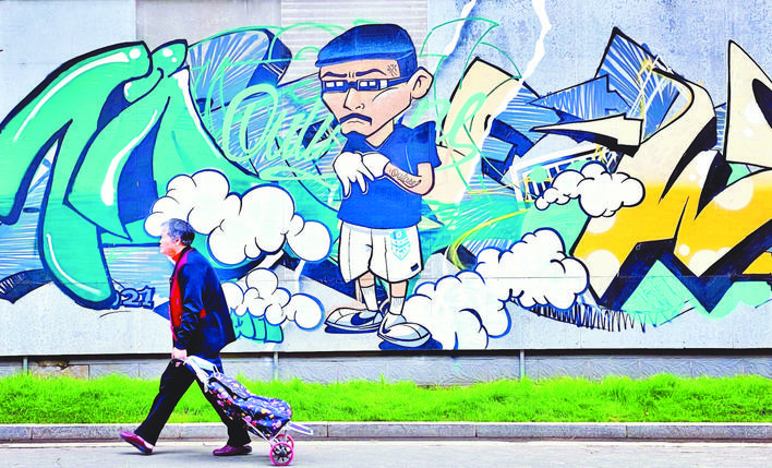長(zhǎng)江180藝術(shù)街區(qū)內(nèi)的涂鴉墻 關(guān)堂所 攝