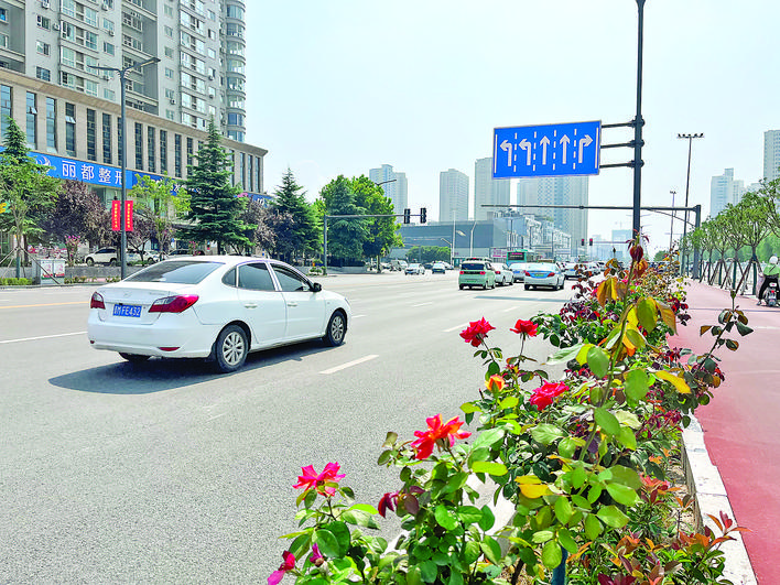 ▲市區(qū)禹西路與魏風(fēng)街交叉口處的渠化島