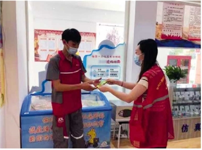 藍(lán)山名邸社區(qū)的新就業(yè)群體服務(wù)驛站為快遞員提供免費(fèi)冷飲