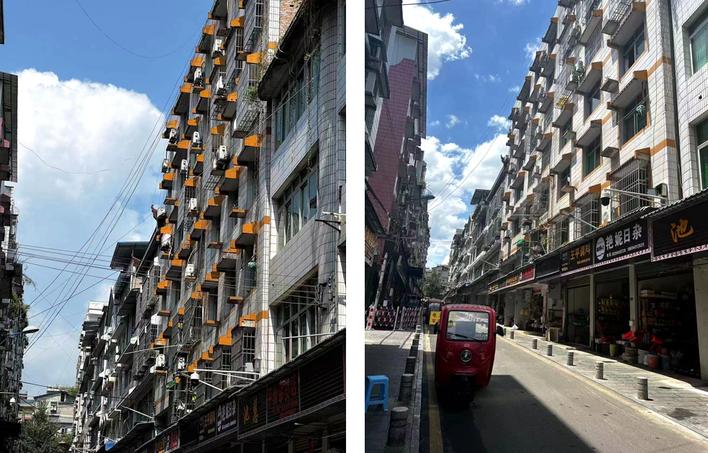航大商城“蜘蛛網(wǎng)”整治前后對(duì)比。(本報(bào)恩施圖片庫(kù) 王玲 攝)