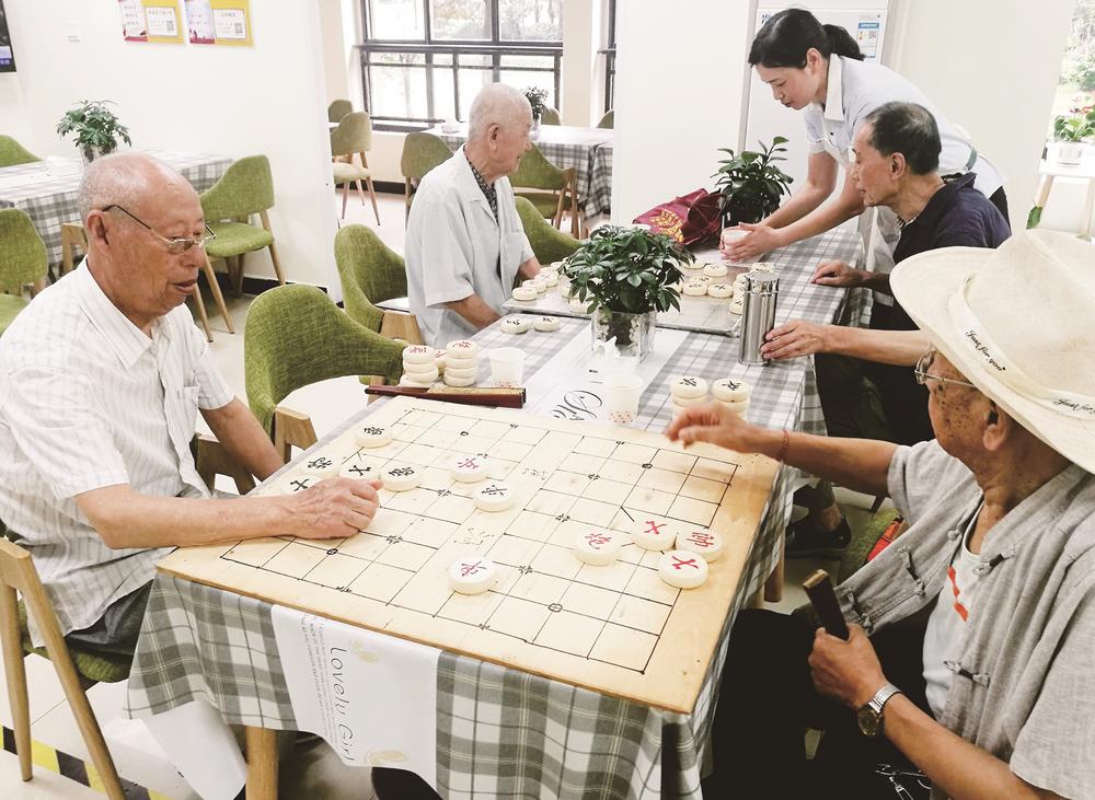在“物業(yè)+養(yǎng)老”服務(wù)中心,老人們下棋娛樂(lè)。 本報(bào)記者 李家平 攝
