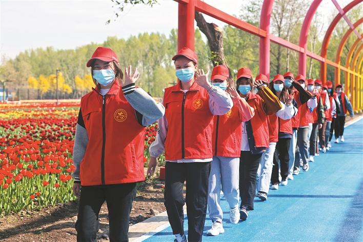 來自五家渠職業(yè)技術(shù)學(xué)校的志愿者在六師五家渠市青格達湖旅游風(fēng)景區(qū)參加崗前培訓(xùn)(資料圖片)。 兵團日報常駐記者 李華北 攝