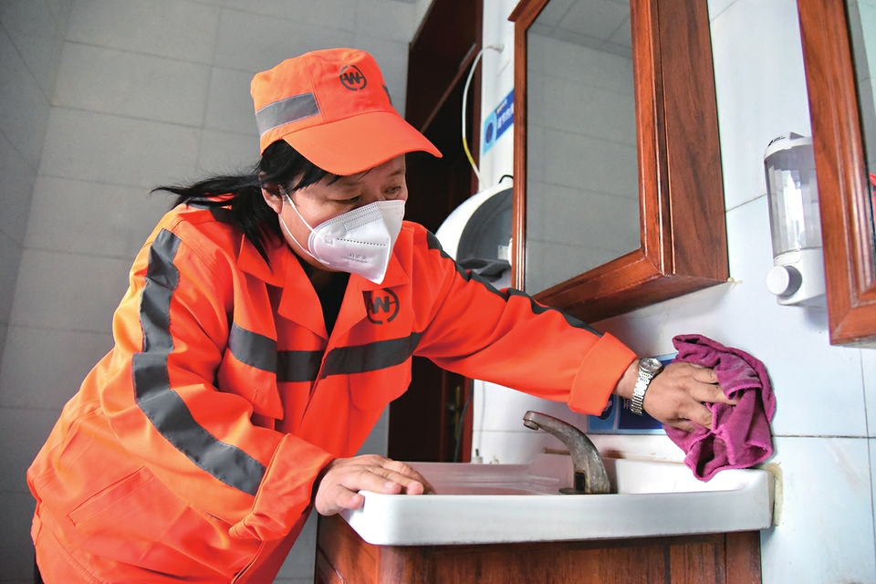 鄭才香管理的這間公廁,始建于2015年,離郵電小區(qū)較近,而這個(gè)小區(qū)居住的多為老年人。為給市民創(chuàng)造一個(gè)干凈、舒適的如廁環(huán)境,公廁經(jīng)過改裝升級(jí),在門廳處設(shè)置烘干機(jī),并完善了無障礙廁間、報(bào)警門鈴及無障礙坡道等方便殘疾人如廁的設(shè)施,同時(shí)新增了母嬰室?!拔夷挲g大了,腿腳不好,之前不敢上公廁,怕摔倒?,F(xiàn)在公廁有了扶手,真是太方便了,晚上出來遛彎,我也敢自己去公廁方便了。”今年78歲的李大爺說?!拔覀儠?huì)根據(jù)季節(jié)溫度的變化,靈活增加消殺除臭頻次?,F(xiàn)在我每隔半小時(shí),就會(huì)對(duì)公廁進(jìn)行一次消毒,做到市民隨手打開一個(gè)衛(wèi)生間的門,廁位都是干凈、無異味的?!编嵅畔阈χf,雖然每天從早忙到晚,但她并不覺得累,尤其是當(dāng)她看到行人笑著出入被自己打掃得干干凈凈的公廁,甚至還有市民會(huì)主動(dòng)幫她維護(hù)公廁衛(wèi)生時(shí),她內(nèi)心感到十分欣慰?!笆忻竦姆Q贊,就是對(duì)我工作最大的認(rèn)可?!编嵅畔惚硎?,公共廁所就像一面鏡子,映射出一座城市的文明程度。她作為一名公廁管理員,要一如既往地打掃好公廁衛(wèi)生,為市民創(chuàng)造一個(gè)干凈整潔的如廁環(huán)境,讓公廁成為城市文明的一扇窗口。