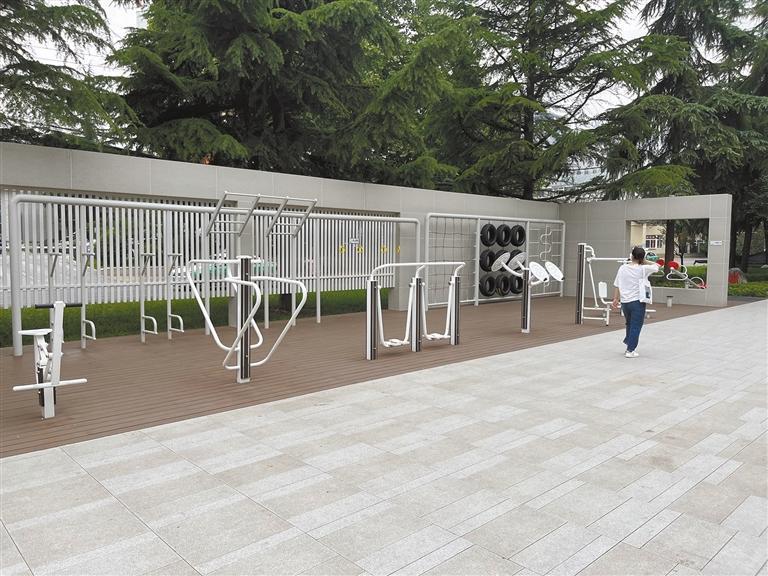 10月17日,記者在改造后的咸陽(yáng)市咸通綠地廣場(chǎng)看到,這里配有休閑座椅、健身器材等設(shè)施,市民在此健身休閑。 本報(bào)記者 劉坤攝