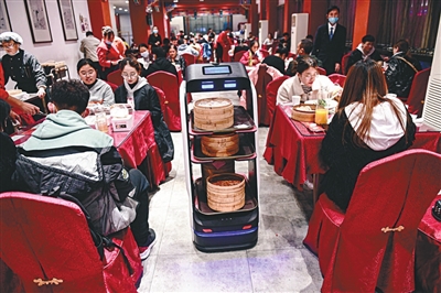 “現(xiàn)在做餐飲招人太難了,使用機(jī)器人送餐可以幫我們降低人工成本?!辈蛷d負(fù)責(zé)人告訴記者,目前店里六七成的傳菜工作都會(huì)交給機(jī)器人操作。一臺(tái)機(jī)器人每天送餐效率能頂2名普通傳菜員。而且,機(jī)器人每次可以送一桌菜,減少了顧客等餐時(shí)間,同時(shí)也提高了翻臺(tái)率。
