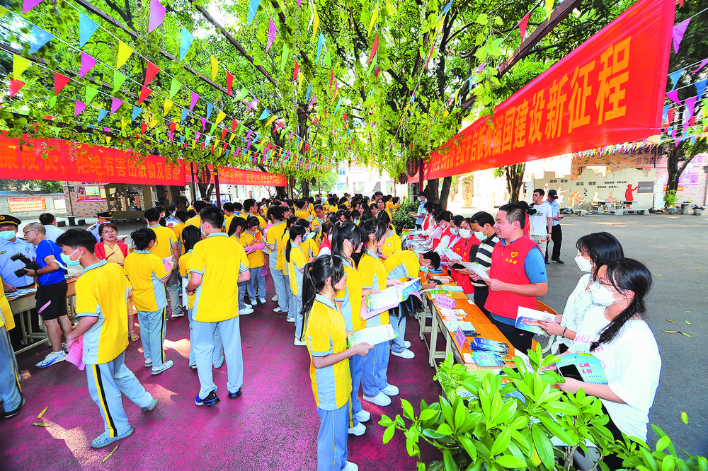 在百色中學開展創(chuàng)城宣傳志愿服務(wù)活動。
