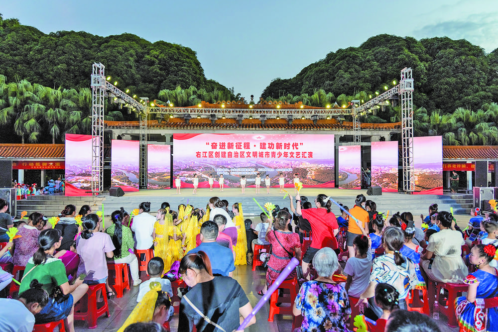 舉辦“奮進新征程·建功新時代”右江區(qū)創(chuàng)建自治區(qū)文明城市青少年文藝匯演。