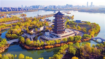 銀川正沿著生態(tài)立市、人水和諧之路護水、治水、用水,譜繪出一幅“城在湖中城愈美,湖在城中湖更秀”的塞上新景。
