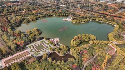 初冬時節(jié),城市水系,層林盡染,景色宜人。