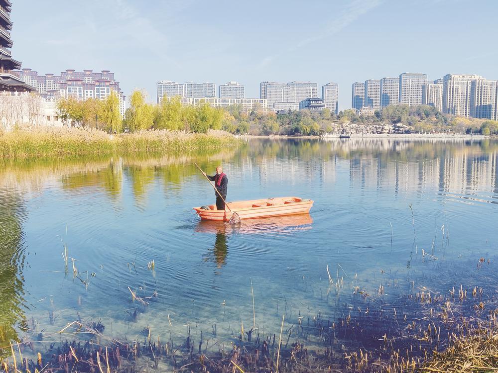 談起公園環(huán)境的改變,市民鄭海軍對(duì)記者說(shuō):“我住在附近5年了,經(jīng)常來(lái)公園遛彎兒。自景觀水質(zhì)提升工程完工以來(lái),湖水水質(zhì)確實(shí)提高了不少,湖底的水草清晰可見(jiàn),周?chē)慕ㄖ褂吃谒?,特別美?!?/p>