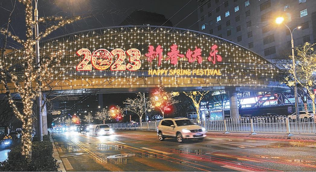 朝陽(yáng)區(qū)對(duì)多條道路及30座天橋進(jìn)行了夜景裝飾,營(yíng)造春節(jié)喜慶氣氛(記者程功攝)