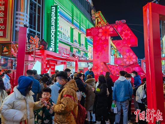 1月16日晚上,長沙步行街仍然川流不息。許多商家都在搭臺(tái)推出促銷活動(dòng)。記者 洪克非/攝