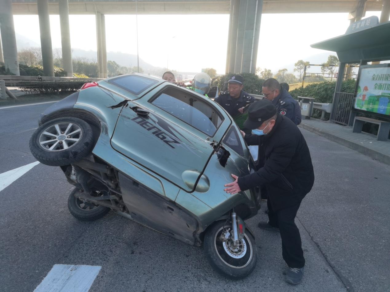法治網(wǎng)訊(范海鋼 張玲)1月30日9時許,浙江省寧波市北侖區(qū)綜合行政執(zhí)法局郭巨中隊隊員巡查至沿海中線時,只聽“咣當(dāng)”一聲,前方一輛三輪車在過岔路口時,右側(cè)輪胎碰到臺階導(dǎo)致側(cè)翻,連人帶車倒在了十字路口中間。