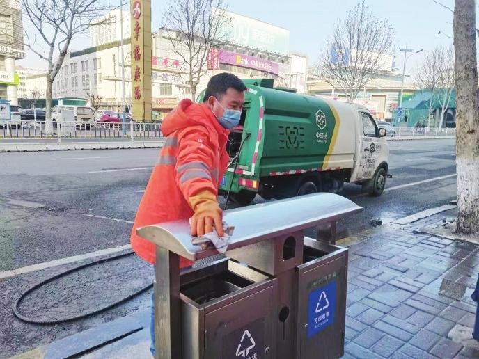 精細清洗,確保衛(wèi)生無死角。在只楚路,一抹橙色的身影蹲在垃圾箱旁,手里拿著抹布仔仔細細擦拭著垃圾箱。當記者走近時,保潔員孟凡榮指著垃圾箱的表面開心地告訴記者:“看,像家里的鏡子一樣,都能照出人影了??粗筛蓛魞舻睦洌疫@心里也很美?!睘楸WC大掃除全覆蓋,芝罘區(qū)環(huán)衛(wèi)中心督導兩家服務企業(yè)組織保潔員開展精細化擦拭,同時加大對垃圾點位周邊的沖洗力度,清除衛(wèi)生死角,確保垃圾箱及周邊干凈整潔。
