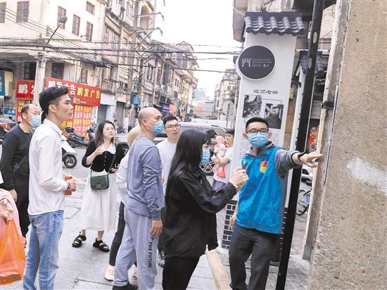 網(wǎng)格員化身宣傳員、講解員,向游客介紹街區(qū)的各個點位。