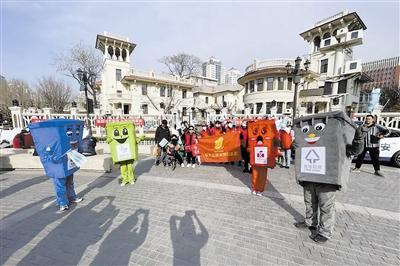 志愿者宣傳垃圾分類。何欣 攝