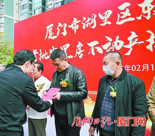 本月中旬,湖里區(qū)啟動湖邊御景安置房產(chǎn)權證發(fā)放儀式,增強居民獲得感。記者 林銘鴻