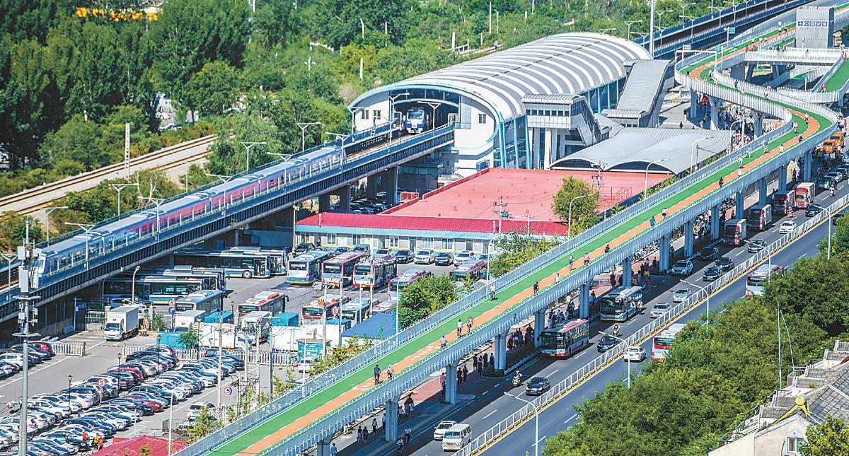 在地鐵13號線龍澤站北側(cè),自行車專用道蜿蜒向西。記者 潘之望 攝