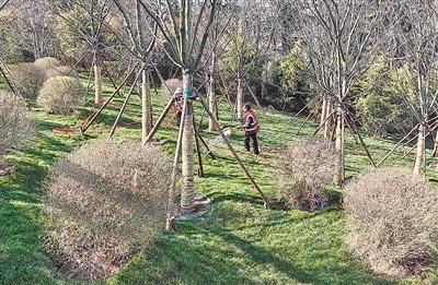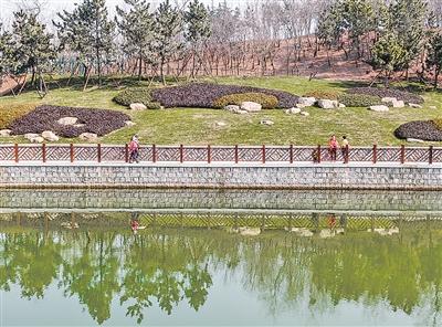 園林工人在養(yǎng)護太平山綠道周邊的草坪 。 邢志峰 攝