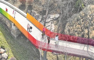 在太平山綠道櫸林公園段,蜿蜒盤旋的彩虹棧道成為新晉網(wǎng)紅地,吸引了不少市民游客前來拍照打卡。據(jù)了解,彩虹棧道是太平山中央公園綠道建設的亮點之一。目前,太平山中央公園7.9公里生態(tài)綠道已貫通,貫穿中山公園、櫸林公園、植物園等多個園區(qū),沿線分布優(yōu)美的自然景觀和濃厚的人文資源,成為一條集休閑健身、登高望遠、科普教育于一體的生態(tài)步道。