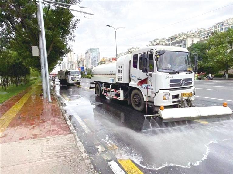 為持續(xù)鞏固全國文明城市創(chuàng)建成果,提升城市“顏值”,迎接即將到來的2023蘭州馬拉松,6月7日,蘭州市開展鐵路兩旁、公路兩側、河道兩岸等環(huán)境綜合整治工作,市城管委統(tǒng)籌力量、精心組織,用智能化手段持續(xù)開展以賽道為重點的市容環(huán)境綜合整治和氛圍營造工作。圍繞打造精致凈美城市、營造“一流”賽道,城管、林業(yè)、住建、工信、蘭州黃河風情線大景區(qū)等部門按照職能重點,對賽道全線的環(huán)境衛(wèi)生、市容秩序、綠地空株補栽、苗木整形修剪、綠雕盆景修復、樓頂樓宇“凈空”、建筑物外觀立面、基礎設施、市政設施等方面開展無死角整治。圖為安寧區(qū)環(huán)保部門清潔路面。(記者 張旭永)