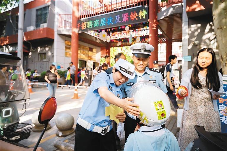 7月4日,臨放暑假前,碑林交警東大街中隊(duì)副中隊(duì)長(zhǎng)尚劍、楊瑞帶領(lǐng)網(wǎng)格民警陳曉渭、韓雪,輔警劉洋走進(jìn)碑林區(qū)建國(guó)路小學(xué),為前來(lái)參加結(jié)業(yè)典禮的學(xué)生及家長(zhǎng)贈(zèng)送反光小紅花貼紙?!八湍阋欢湫〖t花”護(hù)學(xué)活動(dòng)通過(guò)宣講、值守和獎(jiǎng)勵(lì)機(jī)制形成閉環(huán),不僅大幅提升了“一盔一帶”的佩戴率,還通過(guò)一次次進(jìn)校園宣講,有效增強(qiáng)了校園周邊的交通安全守法意識(shí)。