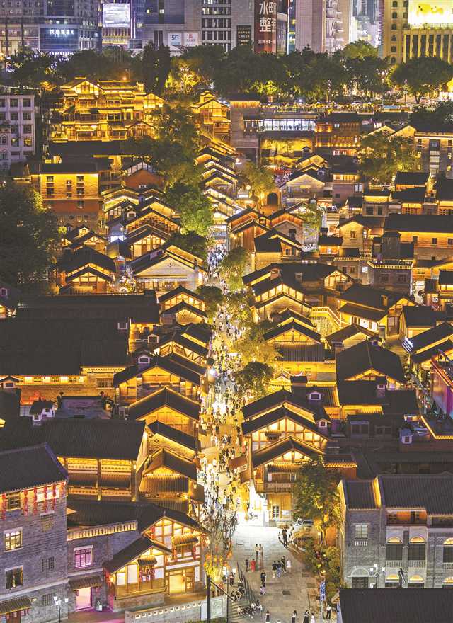 夜色中的十八梯傳統(tǒng)風(fēng)貌區(qū)。記者 尹詩語 攝