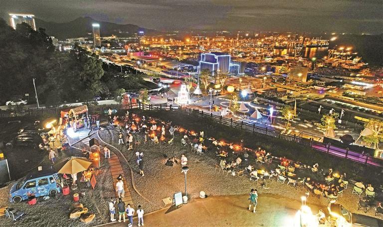 俯瞰鹽田港的海天獨(dú)特夜景,感受海濱城市獨(dú)特夜間風(fēng)情,鹽港夜市吸引了不少市民群眾前去消夜、打卡。(記者 楊浩翰 攝)