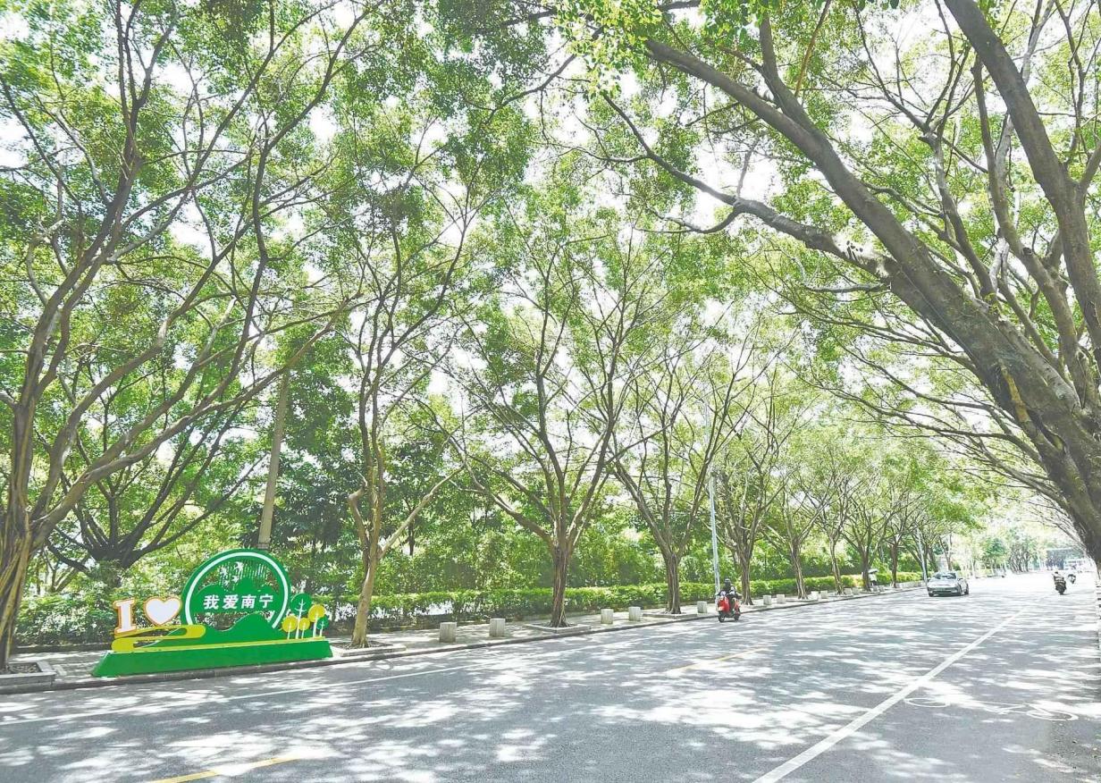 綠城南寧,一年四季樹成蔭。在車來車往的道路上,城市街道旁的一棵棵綠樹“刷”出了南寧街頭最美的底色。炎炎夏日,當人們從烈日下走進綠蔭中,幸福感滿滿。