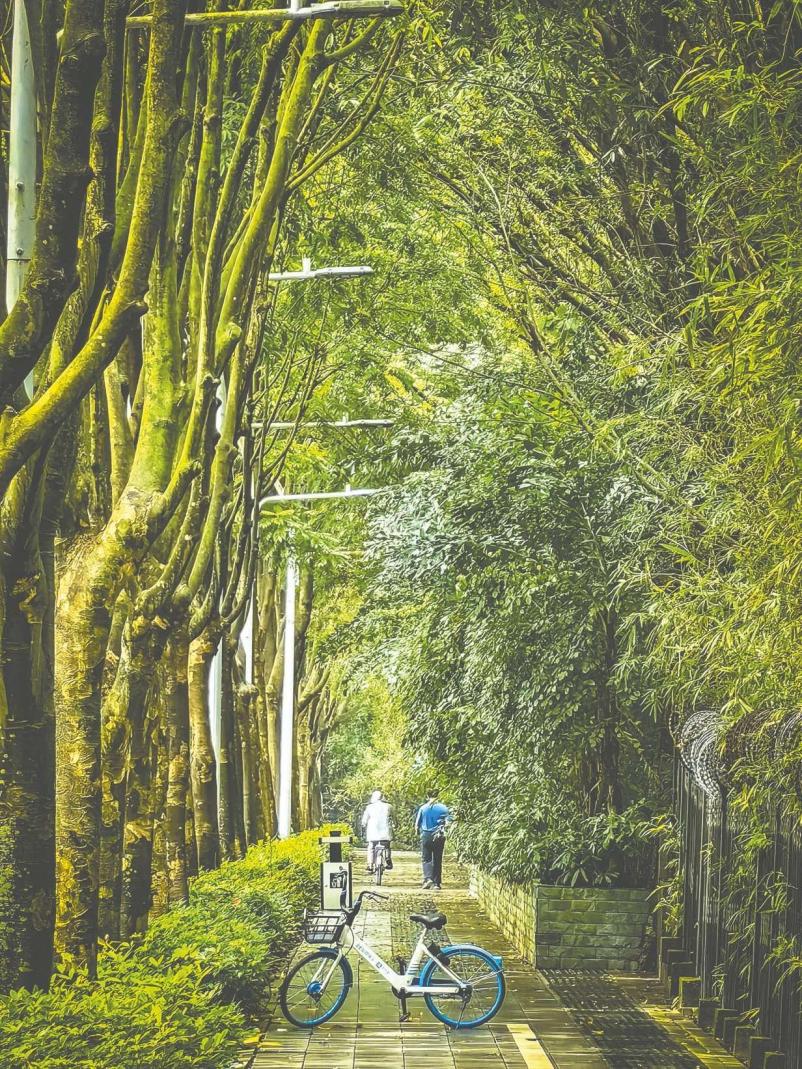 碧湖路上綠樹遮天防曬。記者 梁楓 攝