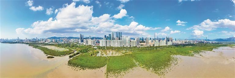 金秋時節(jié),大鵬東涌紅樹林濕地公園里海風輕拂,山海之間,不時有騎行愛好者穿梭于綠道之上;沿著海岸線一路向東,抵達深圳灣紅樹林海濱生態(tài)公園,極目遠望,摩天高樓鋪滿眼簾,科技與繁忙的氣息充斥著每個角落。