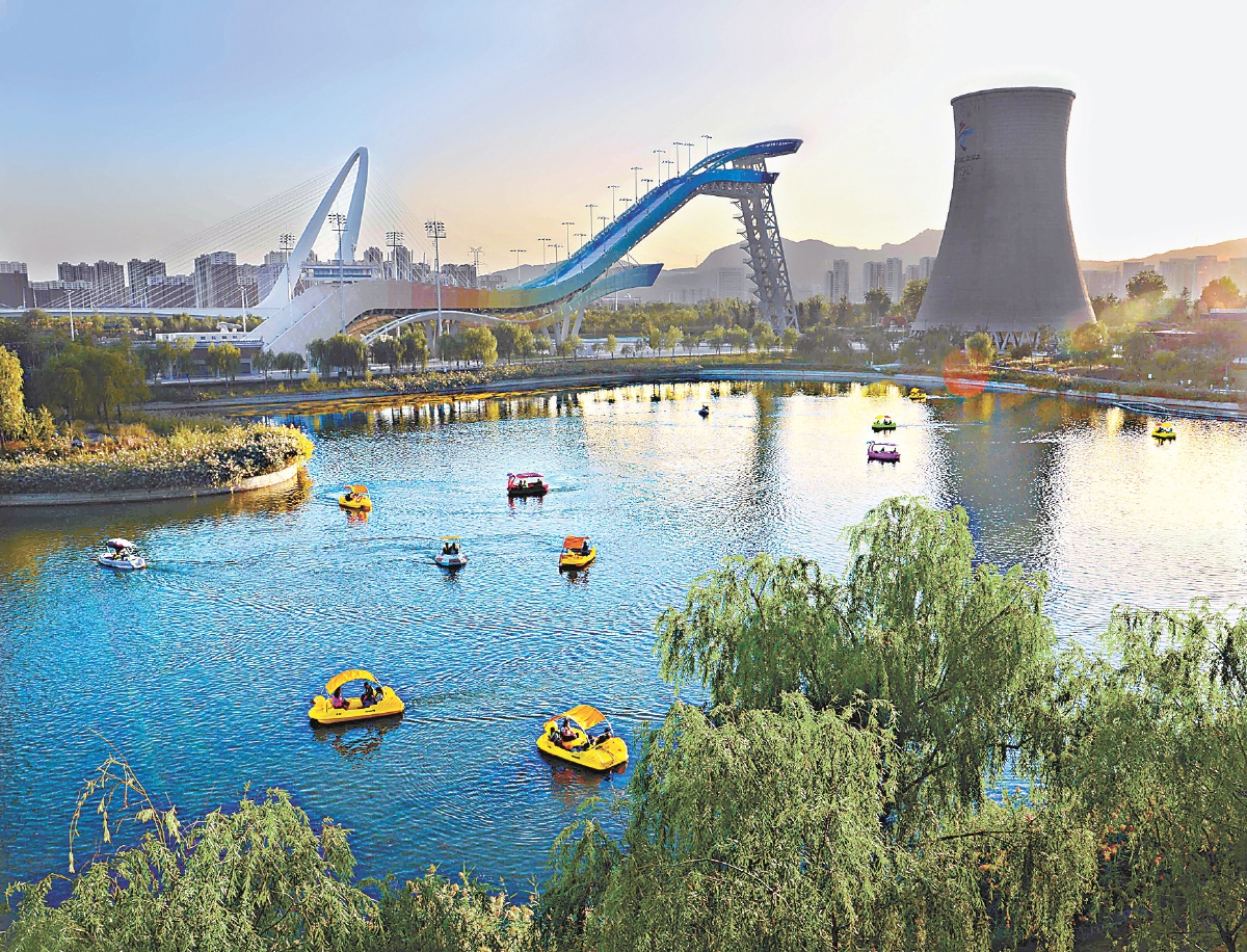 首鋼園里,市民泛舟群名湖,感受新首鋼的風(fēng)采與活力。楊國東 攝
