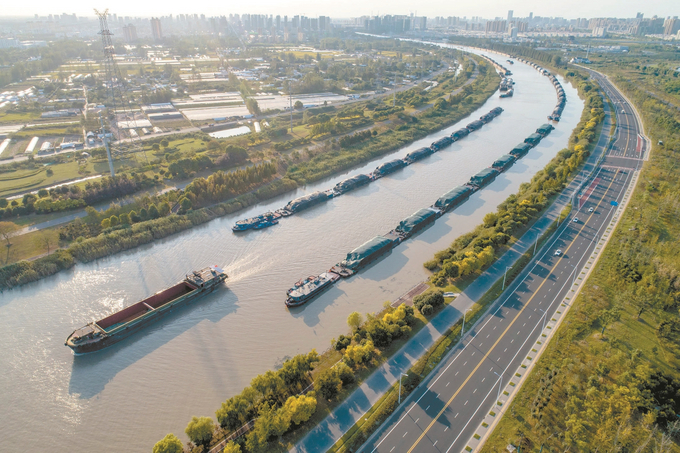 川流不息的運(yùn)河船隊。