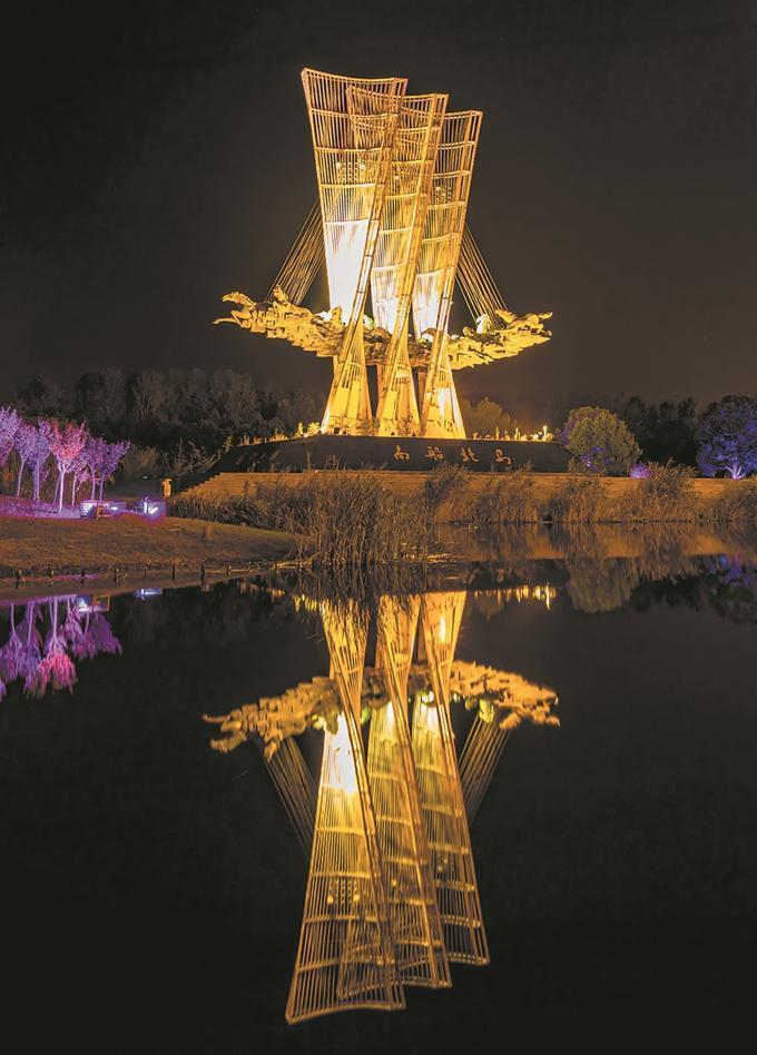 屹立于南部新城的南船北馬標(biāo)志。