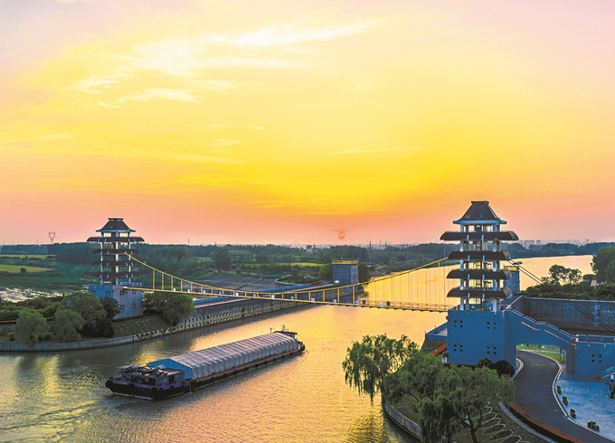大運(yùn)河淮安段上亞洲同類最大的“水上立交”。 劉萍 攝
