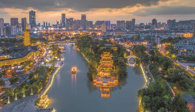 流光溢彩的里運(yùn)河文化長廊夜景。 徐昌政 攝